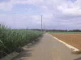 左折して500m進むと 左手に農園があります。 キビ畑でハウスが見えにくいので この道を進んで下さいね!