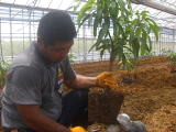 一本一本、マンゴーの根っこを