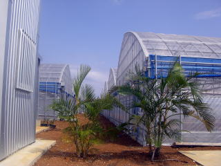 33mと36mのマンゴーハウスが並ぶ